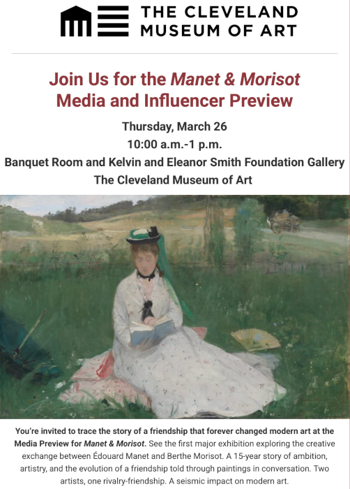 I originally was invited by the Cleveland Museum of Art Communications Department to the Manet & Morisot opening preview on Thursday, March 26, 2026, but a family emergency forced me to cancel at the last minute. Here are my photos from my afternoon visit: