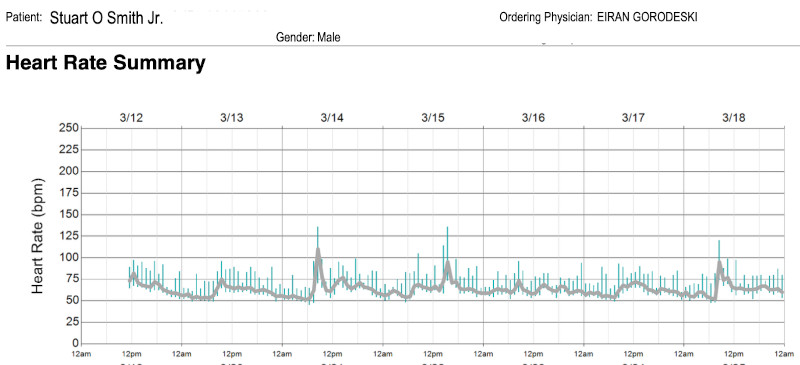 Long-Term Holter Study Summary. Enrollment Period: 3/12/2024 - 3/26/2024. Heart Rate Summary.